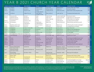 This church year calendar, propers and daily lectionary uses the revised common lectionary as it appears in evangelical lutheran worship (2006).